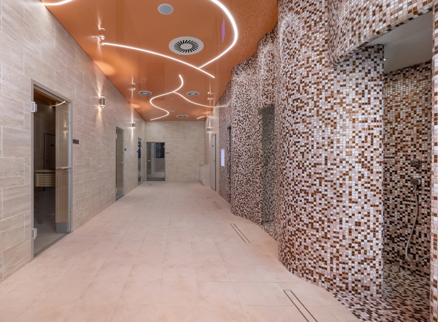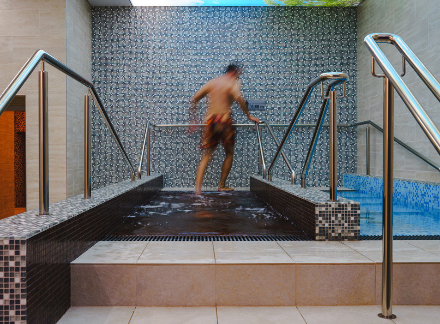 Příjemně teplá voda je ideální jak pro klidný odpočinek, tak pro rekreační plavání. Hosté si mohou užít vodní atrakce jako vodopád, masážní trysky a pohodlnou relaxační zónu se sedátky. Vstup do bazénu je pohodlný po schodech.