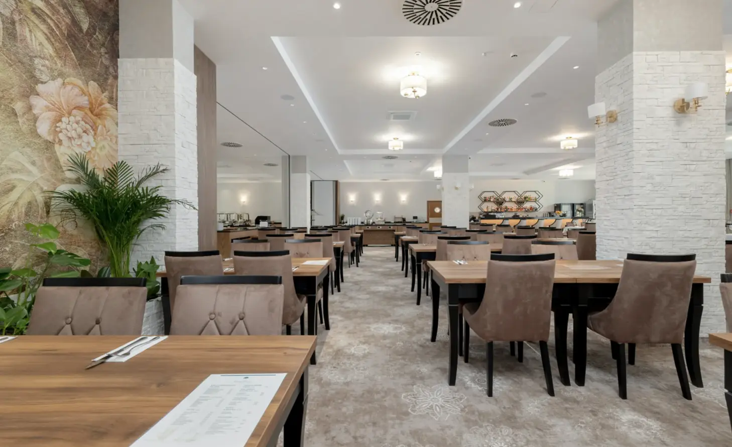 Our Chef drawing on local products and culinary traditions of our region, has created a unique, signature menu for you. Utilizing regional, organic, and unprocessed ingredients, he composes dishes that capture the true richness of our area. Each dish served in our restaurant is meticulously prepared with products sourced from the immediate vicinity. Local vegetables, fresh fruits, aromatic herbs, as well as top-quality meat and fish form the foundation of our cuisine. These ingredients, sourced from organic farms and fisheries, guarantee not only excellent taste but also health and the highest quality. The menu crafted by Chef is a harmonious blend of tradition and modernity. Inspired by local recipes and preparation methods, he introduces modern culinary techniques to his kitchen, enhancing the flavour and nutritional value of the dishes served. The dishes in our restaurant are a true feast for the senses, taking guests on a journey through the culinary history of our region. Every bite is a testament to the fact that the best flavours arise from the combination of a passion for cooking and a love for local products. We invite you to discover the exceptional flavours at Hotel Juvena's restaurant, where Chef's signature menu is sure to delight every palate.