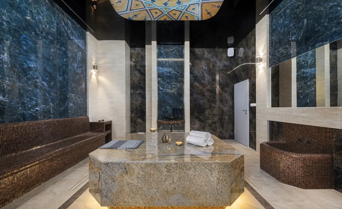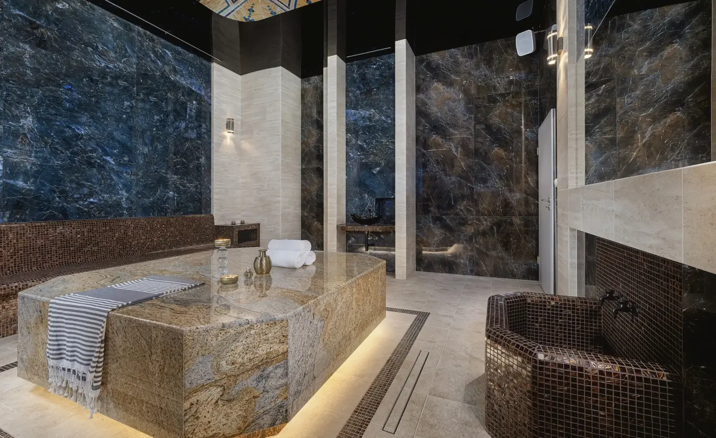 The Hammam is a relaxing and rejuvenating ritual that not only improves physical condition and strengthens the immune system, but also significantly uplifts the mood. It's a natural way to reduce daily stress and restore balance to body and mind. The Hammam ritual takes place in beautifully designed interiors, exuding a unique oriental atmosphere. Wrapped in warmth and aromatic steam, you can completely unwind, enjoying the full benefits of this ancient ritual that combines cleansing, massage, and deep relaxation. Allow yourself the luxury of this extraordinary experience and immerse yourself in an atmosphere of peace and harmony.